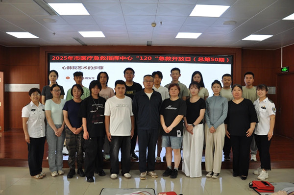 为普及心肺复苏(CPR)与自动体外除颤器(AED)的使用技能,提升公众急救能力,6月28日上午,市医疗急救指挥中心成功举办第50期 “120”急救开放日活动。本次活动以“CPR+AED”培训考核为核心,吸引了来自济南、烟台、高密等地的多名大学生参与。