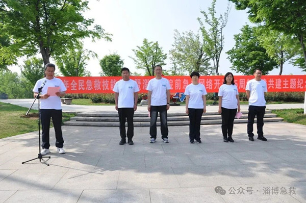 4月17日上午,孝妇河湿地公园春风微漾、党旗高扬。2026年全民急救技能普及暨淄博市院前急救网络开通25周年党建共建主题纪念活动在此举行。活动以党建为引领、以公益为纽带、