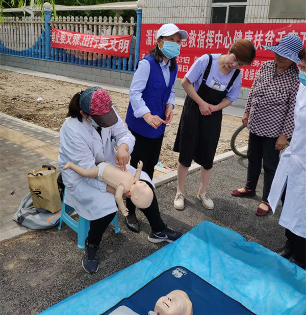 活动现场,志愿者们耐心宣传健康扶贫政策,并义务为过往群众测量血压、开展健康指导、进行急救技能培训等。现场服务群众百余人,发放健康宣传资料200余份。