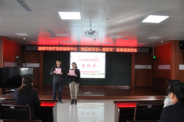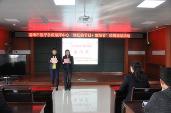 【李文凤 讯】重阳节前夕,为大力培育和践行社会主义核心价值观,弘扬中华民族敬老、爱老、助老的传统美德,10月21日下午,淄博市医疗急救指挥中心开展了“我们的节日·重阳节”经典诵读活动,用实际行动继承和弘扬中华民族优秀传统。