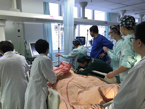 4月17日17:26分,一65岁老年女性因胸闷,腿疼在家属陪同下来到桓台县妇幼保健院急诊就诊。刚到医院患者突然晕厥在地,值班人员立即将患者送至抢救室,吸氧、监护、开通静脉通路,急行心电图,微量血糖测定。值班人员上报至科主任、护士长后,医院立即为该患者开通绿色通道,紧急行颅脑、胸部CT、心脏彩超、双下肢彩超等检查,经诊查,确诊为肺栓塞,立即安排重症做好接诊准备。17:50,该患者由急诊转至重症,紧急行溶栓治疗。目前,患者生命体征平稳。