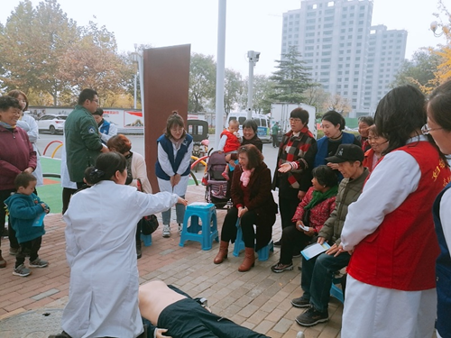 【胡金戈 邢倩 讯】2019年11月上旬,由淄博妇幼保健院急诊科主任魏守亮和护士长邢倩带领急诊科“善德急救”培训小组的医护人员走进石桥赵庄社区,为社区居民们上了一堂生动的急救专业知识培训课。此次急救知识培训旨在让社区居民掌握识别急救和进行自我急救能力,让急救知识惠及广大居民。