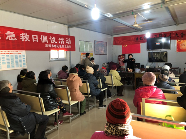 为积极响应“120-国家急救日倡议活动”,1月18日,正值新春来临之际,淄博市中心医院急诊科由刘纳新主任和周翠兰主任带领的急诊科“绿巨人”志愿团队和“红手环”脑卒中志愿团队来到马尚镇西北村进行急救宣传和小型的义诊活动。