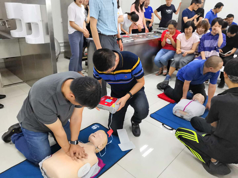 6月20日上午,市医疗急救指挥中心的志愿者来到金晶匹兹堡汽车玻璃有限公司开展急救知识培训。培训内容包括烫伤、烧伤、骨折固定、包扎止血、电击伤、如何正确拨打120电话、快速识别心梗和脑卒中、气管梗阻解除、AED的使用以及单人成人徒手心肺复苏,共有100余名干部职工参加了培训。