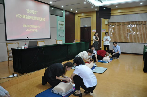 今年是全国第23个“安全生产月”,为认真贯彻落实市委、市政府及市卫生健康委开展“安全生产月”活动通知要求。6月26日下午,淄博市医疗急救指挥中心再次受邀前往淄博市中心血站开展安全生产月大讲堂——应急救护知识培训活动,助力兄弟单位营造“人人讲安全、个个会应急——畅通生命通道”氛围,提高全员急救意识和应急能力。