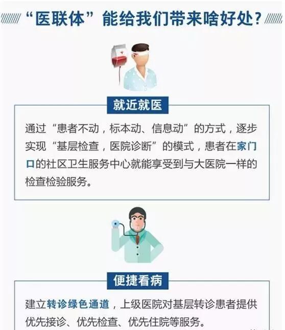 医联体目前有多种组织形式,在市里主要组建医疗集团,在县里主要组建医联体,对于边远地区我们就会建立远程医疗协作网,我们在完善医联体协作机制的时候,落实医疗机构的定位,加强全科医生的培养,在医联体内加快推进家庭医生签约服务,优先覆盖老年人、孕产妇、儿童、残疾人以及贫困人口等;探索对部分慢性病签约患者提供不超过2个月用药量的长处方服务,方便患者就近就医取药;鼓励护理院、专业康复机构等加入医联体,建立医联体内转诊机制,重点畅通向下转诊通道。