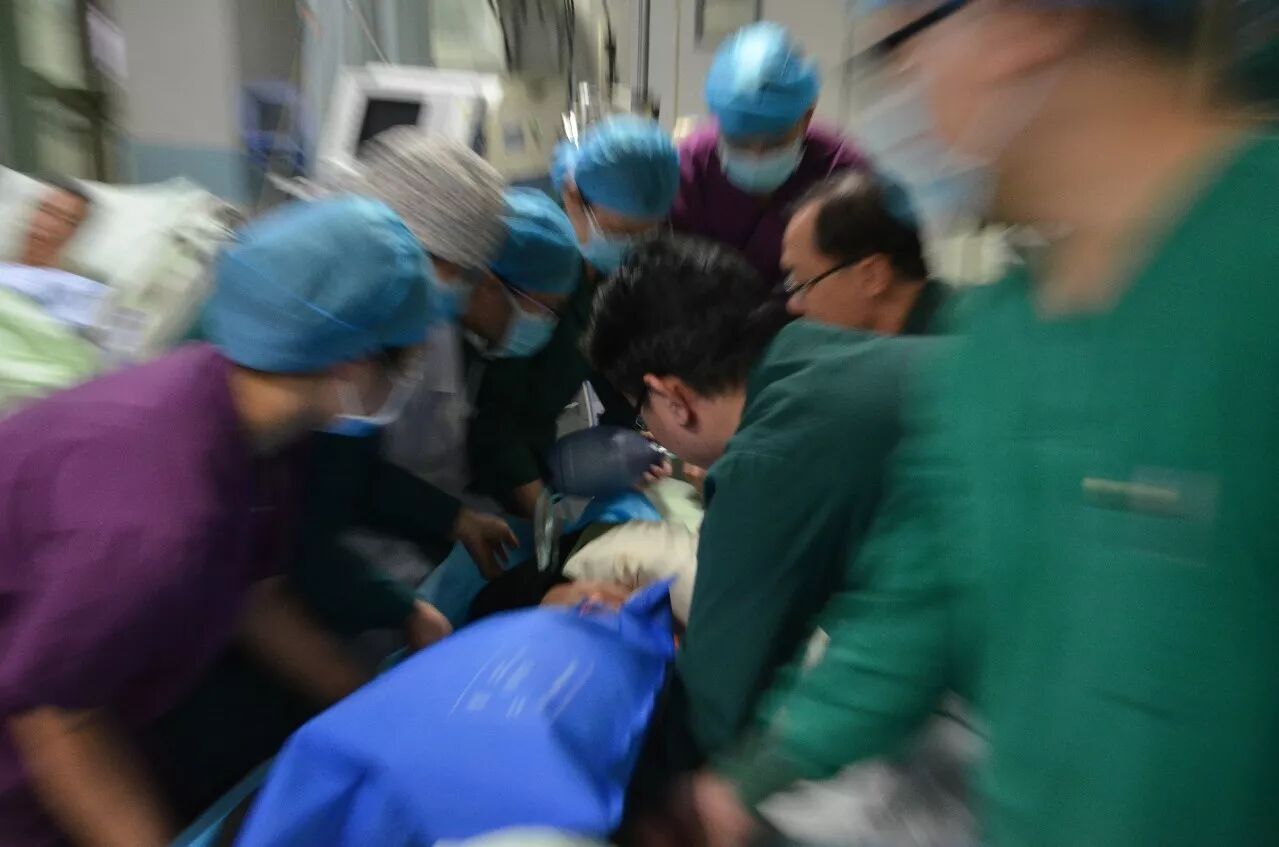 15时46分,救护车抵达医院,急诊科严阵以待的医护人员立即奔向急救车协助搬运患者,普外科、神经外科、胸外科、骨科等科室专家评估生命体征,并迅速采取了开通静脉通路、吸氧、气管插管等急救措施,医护人员按照各自分工、有条不紊地展开紧急救治……